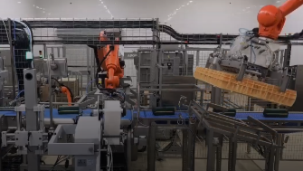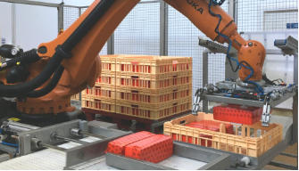 Роботизированная распаллетизация и гигиеничная обработка ящиков для молочной промышленности